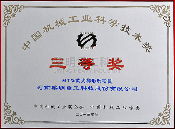 - MTW歐版梯形磨粉機(jī)中國機(jī)械工業(yè)科學(xué)技術(shù)獎(jiǎng) >>查看證書