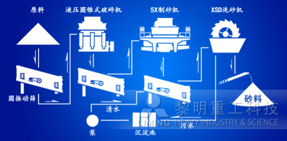 山東某老板投資300萬元建設(shè)砂場,以700mm以下的河卵石為原料生產(chǎn)機制砂。該場采用黎明重工的GZD1100*4200振動給料機、PE750*1060顎式破碎機、CS160圓錐式破碎機、5X1145制砂機、3YZS2460振動篩、XSD3016洗砂機兩臺的機制砂生產(chǎn)線配置,時產(chǎn)100方。如此,河道中90%以上的河卵石獲得開采利用,利用率的提高,相應(yīng)地創(chuàng)造了更大的利潤空間。