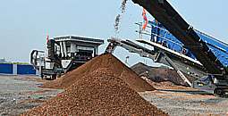 根據(jù)客戶的實際情況,我們?yōu)槠渑渲昧薑F1214Ⅱ-3三組合移動站。振動給料機將大塊的建筑垃圾破碎送入PFW1214Ⅱ歐版反擊式破碎機,破碎成0-10mm、10-20mm、20-40mm三種規(guī)格砂石骨料。