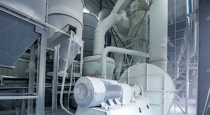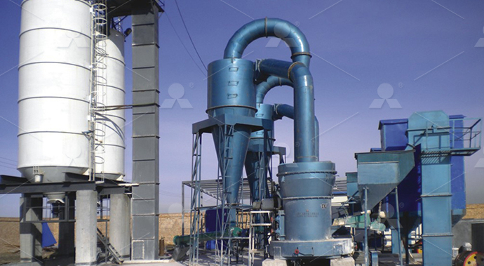 第二階段:磨粉破碎后的小塊石膏經(jīng)提升機送至料倉,再經(jīng)振動給料機將其均勻定量的送入磨粉機研磨室內(nèi)進行研磨。
