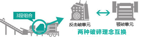 一種車(chē)身為8種機(jī)型通用,喂料單元互換系統(tǒng)、破碎單元互換系統(tǒng)和篩分單元互換系統(tǒng),只需再投資單機(jī)設(shè)備成本,短時(shí)間內(nèi),即可在同一車(chē)身上實(shí)現(xiàn)不同型號(hào)喂料單元、破碎單元和篩分單元互換系統(tǒng),整機(jī)各系統(tǒng)之間的匹配,適應(yīng)場(chǎng)合更廣泛,破碎功能更強(qiáng),客戶(hù)的消費(fèi)品得到較大體現(xiàn)。