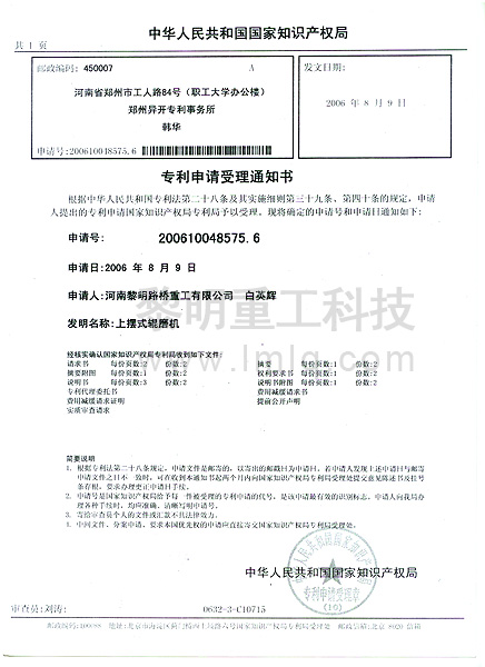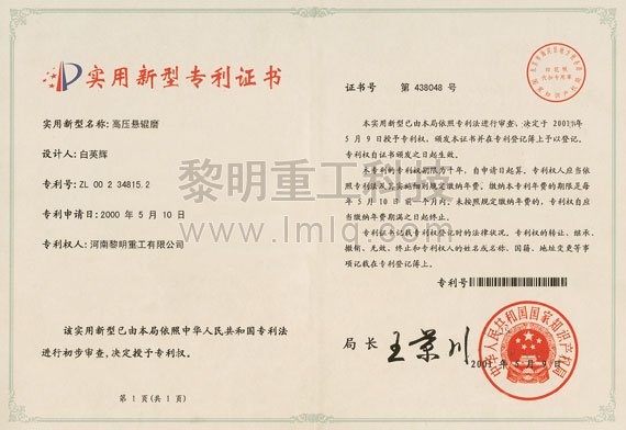 - 高壓懸輥磨粉機(jī)專利號(hào):ZL 00234815.2 >>查看證書