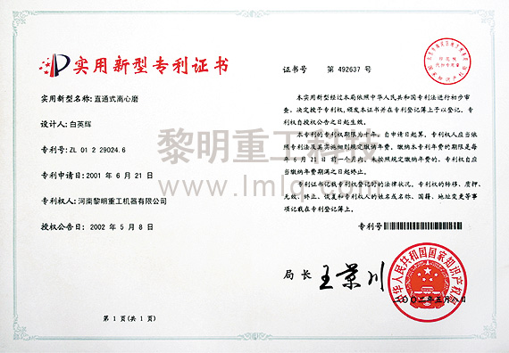 - 直通式離心磨粉機(jī) 專利號(hào):ZL 200520030598.5 >>查看證書