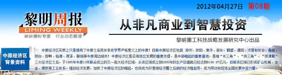 【導(dǎo)讀摘要】中原經(jīng)濟區(qū)地處中國中心地帶,全國主體功能區(qū)明確的開發(fā)區(qū)域,其范圍涵蓋河南全省、延及周邊地區(qū)的經(jīng)濟區(qū)域,地理位置重要,市場潛力巨大,文化底蘊深厚,在全國改革發(fā)展大局中具有重要戰(zhàn)略地位。去年十一國慶前夕,國務(wù)院正式出臺《國務(wù)院關(guān)于支持河南省加快建設(shè)中原經(jīng)濟區(qū)的指導(dǎo)意見》,建設(shè)中原經(jīng)濟區(qū)正式上升為國家戰(zhàn)略。