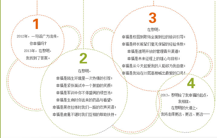 我始終堅信著我的夢想。我相信,在我生命里投下的那顆種子。當你處在苦難之中的時候,請千萬不要放棄信念,不是幸福不來敲門,或許只是因為幸福還沒有趕到,亦或是因為幸福趕路太急了,暫時錯過了你的房門,但請你一定要相信,只要你不放棄,還在努力,你身上散發(fā)出來的光環(huán)一定會指引著幸福找到你,叩響你的房門的!
