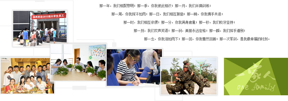 欣受秦嶺祥云之庇護,感懷巴山濺淚之春秋,吐納秦皇遺風之氣息,果腹八百沃土之簞食。久居秦川,未有單刀赴會之旅,不曾料想,今竟衣食宿寄于他鄉(xiāng)…… 黑紅的背景,綠色的園區(qū),無論是軍訓還是培訓,這些點綴和值得銘記的時刻,早已和黎明精神一起幻化成了向上的動力……美好的未來就在不遠處,用一邊欣賞一邊散 步的心情去追求美好,迎接成功吧!